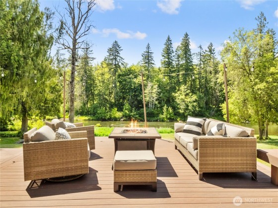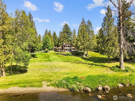 This luxurious 3-bedroom, 2.5-bath estate offers 128 feet of serene Nisqually riverfront in the highly sought-after, gated Whitewater Estates community. Impeccably updated throughout, this home features a spacious and thoughtfully designed layout including a primary suite on the main floor, and a loft with two upstairs bedrooms. Upgrades include A/C, heated tile floors, HVAC replaced 2021, sprinkler system, newer Wolf deck, year round LED lights, wired for a hot tub and beautifully landscaped grounds. The massive detached shop includes a 12X40 drive-through RV bay, and a 1/2 bath! A durable 50-year roof and no flood insurance required. Community horse arena and miles of riding trails. Don't miss this rare waterfront gem!