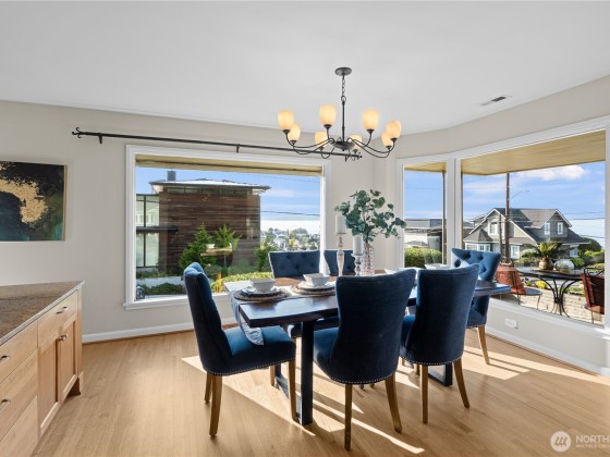 Alki View Home! Welcome your next chapter in this beautifully updated 3,400 (±) sf home ideally situated on a 10,625 (±) sf corner lot w/stunning Mountain & Sound views. Upstairs, gleaming hardwood floors on the main level w/a formal dining area, chef’s kitchen & A/C are perfect for entertaining in style. The versatile lower level is a PERMITTED ADU w/new kitchen, Primary Suite, office & second living room & is perfect for hosting weekend guests or multi-generational living. A level, fully fenced backyard offers an inviting space that fosters a true sense of community. Birthday parties to backyard BBQ’s, this home is made for making memories. Imagine the perfect setting for your Holiday festivities! Special properties like this one are rare