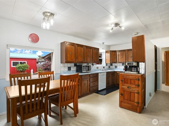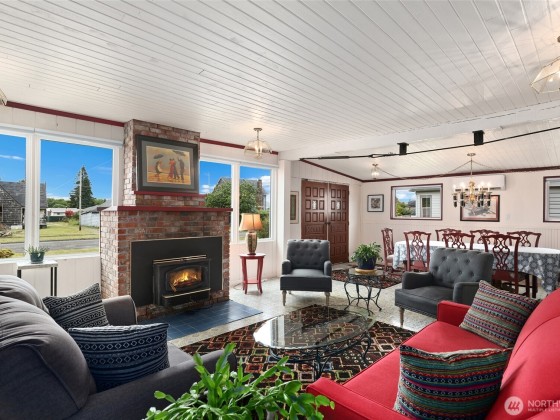 Welcome to this spacious 3-bedroom, 1.75-bath home located on a generous corner lot in the heart of Cosmopolis. With over 2,500 sq ft of living space, this property offers a flexible layout that includes a bright kitchen with eat-in space, a dedicated dining area, and multiple living areas perfect for entertaining. Enjoy modern comforts with ductless mini-splits for efficient heating + cooling, a wood-burning fireplace insert, and a mix of laminate, vinyl, and carpet flooring. LOTS of storage. Outdoor features include a partially fenced yard, patio, RV parking, detached shop, gazebo, and mature landscaping with garden space. Conveniently located near schools and town amenities with easy access to Hwy 101. A versatile home with room to grow!