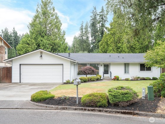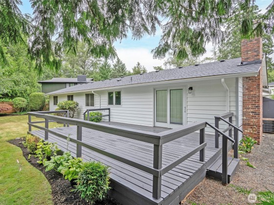 Gorgeous park-like setting in the desirable City of Fircrest. This completely refreshed home sits on a nice, large lot with easy one level living. This rambler has beautiful hardwoods & lifetime luxury vinyl flooring for durability. The kitchen boasts a peninsula layout, new appliances and quartz solid surface counters. Fully updated finishes throughout including two gorgeous bathrooms, one of which is in the primary bedroom. Fresh paint inside & out plus a new roof. Perfect home for our PNW weather having a heat pump for comfortable climate control. Two separate living areas with one having a gas fireplace. The manicured yard is fully fenced in the rear, large deck for entertaining & relaxing. Bring your lemonade and outdoor furniture.