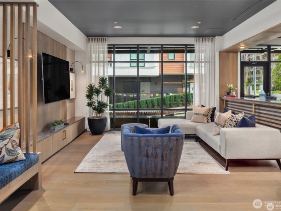Live in style at JADE RESIDENCE, Totem Lake’s premier urban community with luxury finishes, rare amenities, and an unbeatable location! This sleek 1-bedroom home offers soaring ceilings, oversized windows for amazing light, and a modern interior design. The kitchen features stainless steel Bosch appliances, quartz counters, full-size washer & dryer, engineered hardwood floors, and more. Enjoy resort-style amenities: clubroom, gym, rooftop deck, package lockers, storage, guest parking, dog washing area, bike storage, and EV charging. Steps to Totem Lake Village, Evergreen Hospital, parks, transit center, and schools, with quick access to I-405. Includes 1 secure garage parking spot. Well-managed HOA with low dues and no rental cap. Must see!