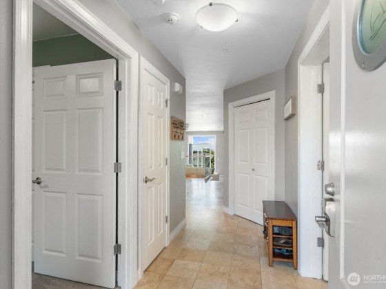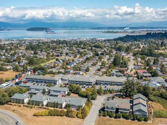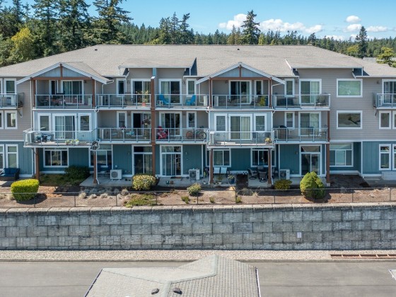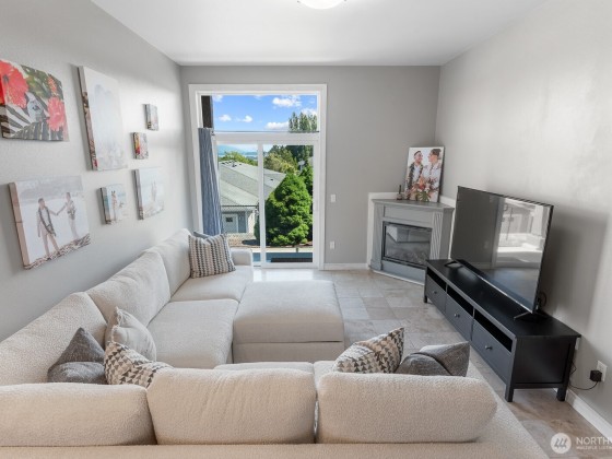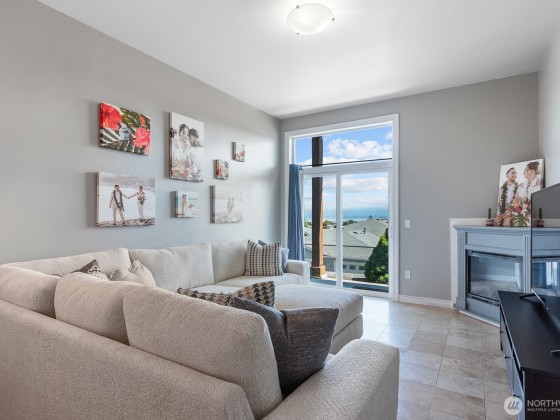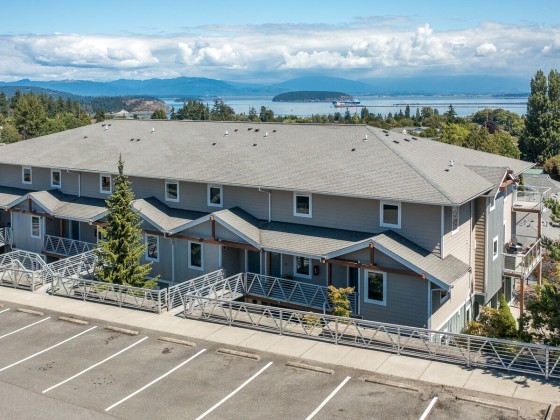 Savor Anacortes coastal living in this beautifully appointed 2-bed, 2-full bath condo with in-unit laundry and an easy layout. An open kitchen with island seamlessly connects to the dining and gracious living area, where a fireplace adds warmth and perfect for gathering. Plus slider to patio for outdoor enjoyment. The ground-level home gives views of Fidalgo Bay, Mt. Baker, and town. The spacious primary suite offers a walk-in closet and 5-piece en-suite. Covered parking with storage enhances convenience. Perfectly situated near town amenities and community forestland trails around the corner, with effortless access to NAS Whidbey and Hwy 20—an ideal low maintenance lock-and-go residence or serene retreat for embracing the best of the PNW.