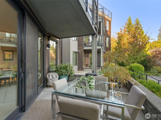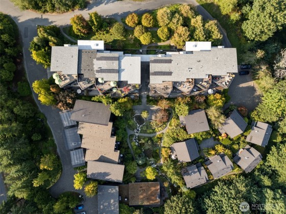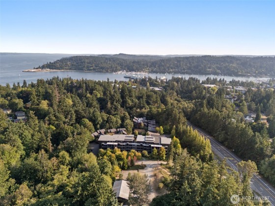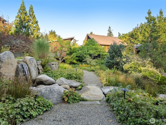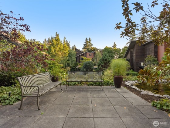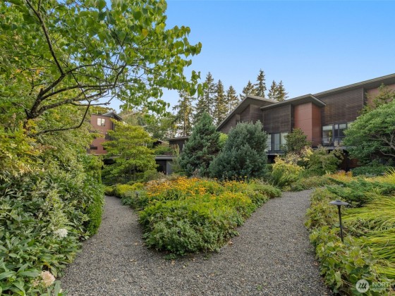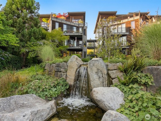 The perfect one level home in the desirable Vineyards community, just a short walk to the ferry or picturesque downtown Winslow. This ideal condo offers a sublime view of the lush courtyard and pond from inside or on the patio. Southern exposure with a wall of windows and 9’ ceilings make this home light and bright all year. The home has been completely updated throughout with clever storage, luxury finishes, new paint, flooring and window coverings. Easy elevator access from the garage to your front door, absolutely no stairs! Enjoy the mature paths throughout the beautiful gardens & common wooded areas that connect to local access to Winslow and ferry. A garden oasis with all the amenities of in town living.