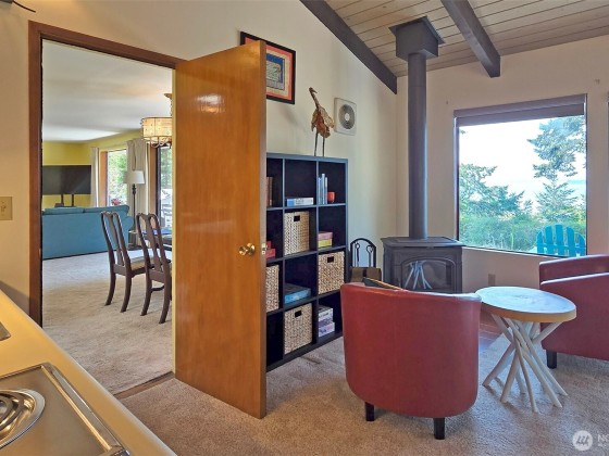 Nestled on Lopez Island's desirable north end, this west-facing waterfront home offers a rare blend of island tranquility and village convenience. With private beach access just steps from your door, you can enjoy vibrant sunsets, beachcombing, and watching passing ferries and orcas from the comfort of your home. This unique property is designed with two living spaces, making it an ideal vacation retreat. Separate living areas ensure privacy for groups, while waterfront amenities provide a perfect setting for gathering and making memories. Large deck creates the perfect space for outdoor entertaining, barbecues, and relaxing. Wonderful fenced garden with raised beds & fruit trees. Make this exceptional waterfront property your new getaway.