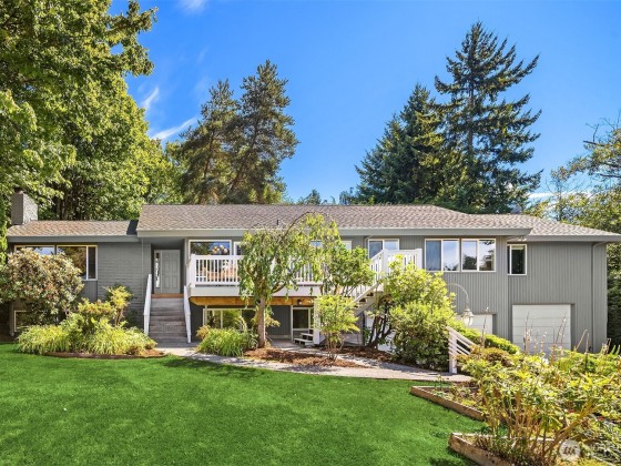 Live the Mercer Island lifestyle in this 5BR/3BA retreat with 3,840 SF of refined living on a 1/3 acre in one of the Island’s most coveted locations. An entertainer’s kitchen boasts granite slab counters, Sub-Zero, Viking, GE Monogram, and Bosch appliances framed by custom cabinetry. Sunlight pours across oak floors and vaulted ceilings, creating airy elegance throughout. The main level hosts three bedrooms, including a tranquil primary suite; the lower level offers two bedrooms, full bath, laundry, rec room + bonus space—ideal for movie nights, guests, or multi-gen living. Outside, enjoy a private backyard with patio, 3-car garage, boat/RV parking, EV charger, and security system. Moments from dining, parks, schools, and future light rail