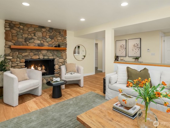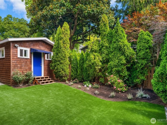 REDUCED $75k, a beautifully reimagined Laurelhurst home offering exceptional flow, timeless upgrades, and versatile living. A landscaped front courtyard welcomes you into light-filled living, kitchen, and dining spaces that connect seamlessly to the backyard—designed for effortless entertaining. The layout includes a formal dining room addition and full lower-level ADU with private entry and second kitchen. Upgrades include solar panels, EV charger, central A/C, chef’s kitchen with double ovens, and refreshed interiors throughout. Outdoor areas feature turf, water feature, detached studio, and curated landscaping. Enjoy rambler-style living in a peaceful setting close to top schools, the UW, and within the Laurelhurst Beach Club boundary.
