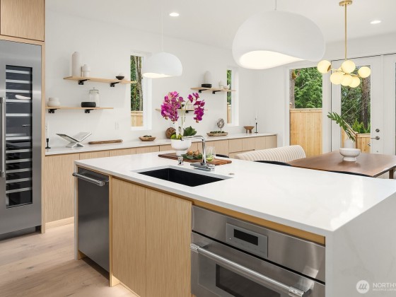 **CALL TO ASK ABOUT SELLER CREDIT TOWARD A LOWER INTEREST RATE** Move-in ready. This 5BD/5BA home in SE Bellevue features a serene blend of Japanese and Scandinavian design—a modern retreat w/ no HOA. Soaring 9'–12' ceilings & open-concept great room offer airy elegance. Main-level guest ensuite w/ private entrance is ideal for multi-gen living. Gourmet kitchen includes Thermador S/S appliances, quartz counters, & custom cabinetry. Upstairs: spa-like primary suite w/ walk-in closet & private deck, plus additional bedrooms, shared bath, laundry, & deck. Thoughtfully designed w/ a dedicated office/den, engineered acoustic walls, ERV system, epoxy garage, & fully fenced yard. Prime access to I-90, Downtown Bellevue & Seattle.