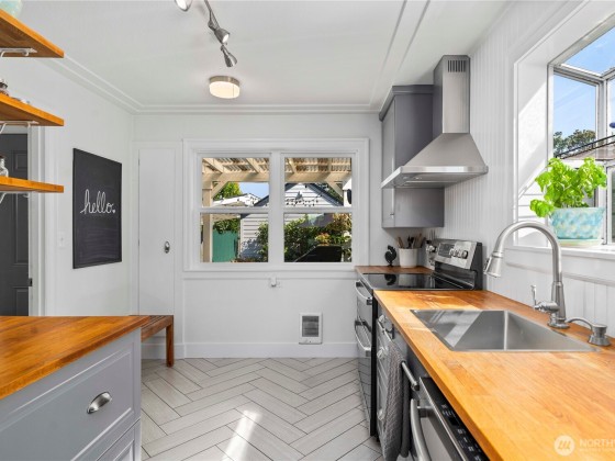 Stunning Tacoma oasis! First time on the market in over 20yrs, this beautiful 3bd/1.5bth Craftsman features gorgeous original hardwoods, new roof & skylights, new PEX plumbing, new sewer line, new water main, new windows, updated electrical, new WH, new heat pump & more! Beautifully updated kitchen w/Custom cabinets, SS applncs, double-oven range, butcher-block counters & herringbone tiled floors. Enjoy fresh blueberries beside the front-yard river rock fountain, no-mow turf & mature plantings. Serene backyard w/Covered deck, hot tub & plenty of space to grill & entertain. Automated gated alley access, rebuilt garage, carport, garden shed & opportunity for a DADU. Absolutely turn-key & ultra low-maintenance. All appliances stay. Must See!
