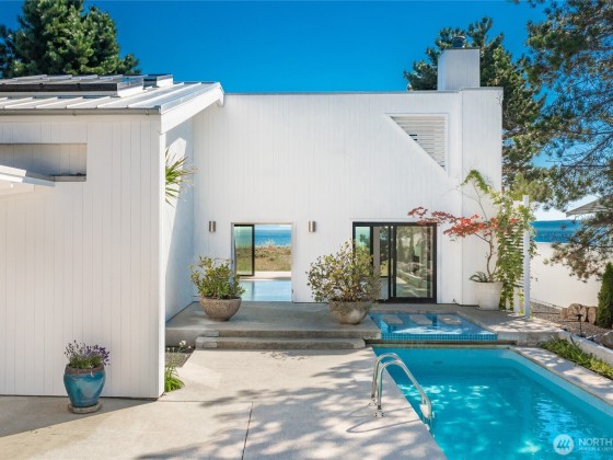 Unparalleled retreat on private peninsula overlooking San Juan Islands, Mt. Baker, Olympics & Gulf Islands. Exceptional 60' of waterfront w/renowned Architect Stefan Brunhoff! Renovated 2024 inside/out custom w/ALL NEW: paint, 60' foot saltwater lap pool, heat pumps/AC, generator, on-demand H2O, electrical, Marvin low-E windows/sliders/doors, Red Oak hardwood/marble floors, 2 wood FP. Kitchen: Red oak cabinets, slab granite, steam oven! Imagine a morning walk on the beach, paddle out on your SUP, evening swim or entertaining under the stars, this is more than a waterfront home – it’s a lifestyle. Less than 30 minutes to Vancouver/YVR=easy access travel. Private marina, airstrip & minutes to the border. Your dream coastal escape awaits!