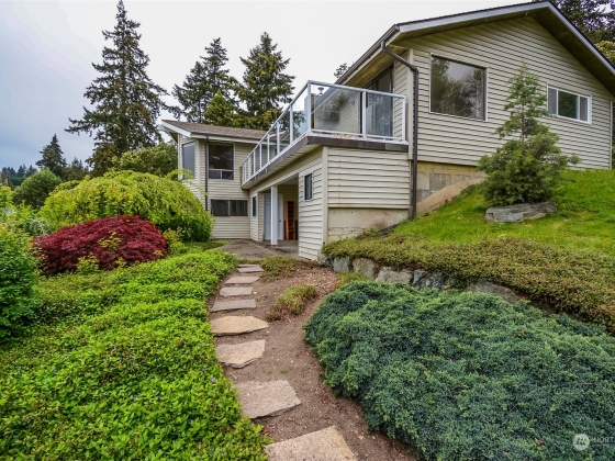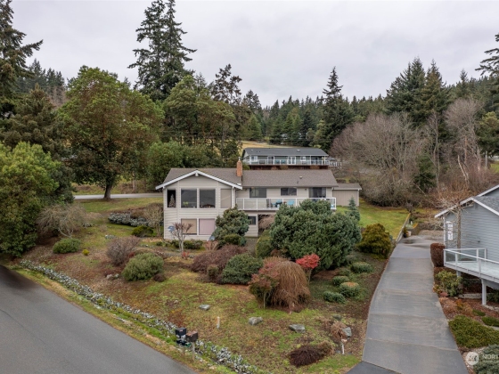 Marvelous Mariners Cove View home! Nestled atop hillside in North Whidbey’s boating community, w/scenic views of Saratoga Passage & Cascade Mts. Home's numerous features: Double front door w/natural stone entry; 3 bdrms & 3 updated baths; open living room area w/large windows & stone fireplace & insert; formal dining room, cook’s kitchen w/stainless appliances, eating area & access to view deck; Primary ensuite w/bath & walk-in closet; lower level family rm w/brick fireplace & access to outdoor patio, entry to 2-car garage. Plus, bonus/rec room for shop, crafts, or gym. Low maintenance landscaping w/large variety of plants & trees to give a feel for privacy. Community has beach access, private boat launch & docks, athletic courts, and more!