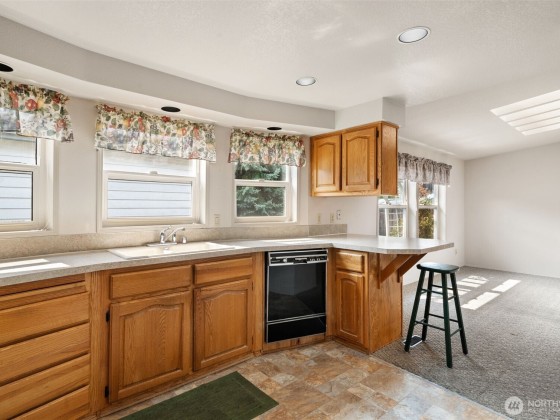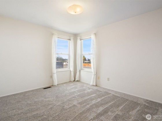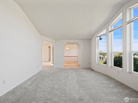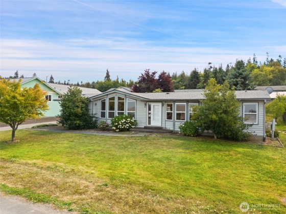 Enjoy the best of Sequim living in this affordable, single-level home. Located on a quiet dead-end street, this house offers a comfortable layout and a peek-a-boo water view. The huge detached garage is perfect for projects and extra storage, and there’s plenty of room for RV or boat parking. You'll stay comfortable year-round with the heat pump, and the over-sized lot features an irrigation line, making it ideal for a garden. With no HOA dues, and an unbeatable location within walking distance of downtown shops, restaurants, and the city trail system, this home has it all. New Carpet Installed - Will update photos once received
