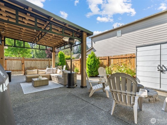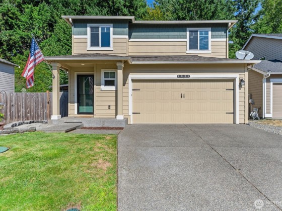 Welcome Home! Exceptional 3-bed, 2.5-bath home offers comfort, style, & functionality. Step into the bright vaulted entryway into an inviting open-concept floorplan. The living room flows seamlessly into the dining area & kitchen. The kitchen is equipped w/SS appliances, ample counter space, & generous cabinets. Main floor also includes a convenient utility room for laundry & storage. Spacious primary suite is a true retreat with its attached bath & WIC. Two additional roomy & bright bedrooms and flex/office room. Amazing backyard features an extended patio & cabana for outdoor living & entertaining. Fully fenced yard backs up to greenbelt for added privacy & peaceful backdrop. Just minutes to shopping, amenities, trails, parks, JBLM, I-5.
