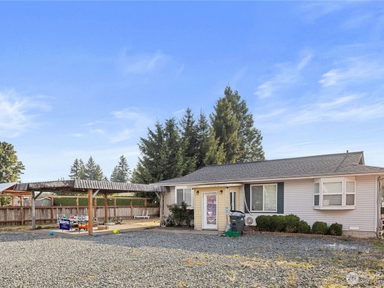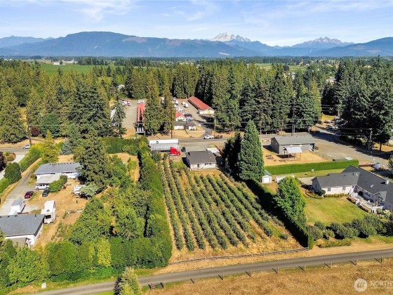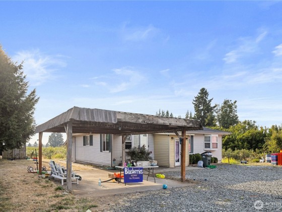 Approximately 1,600 square foot house on a one-acre lot. The home features 3 bedrooms and 2 bathrooms. The property includes a one-bedroom rental suite, currently rented for $800 per month, and the main house is rented for $2,300 per month. The location is convenient, situated between Lynden and Bellingham, near the Canadian border, and is in the desirable Lynden school district. The property offers the opportunity for a hobby farm, with a blueberry stand on the premises. The house comes with an American Home Shield Essential 1-year Warranty plan.