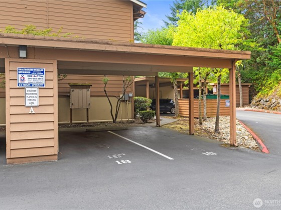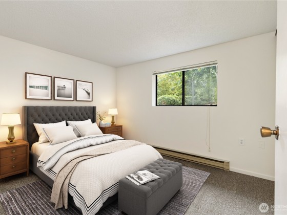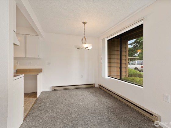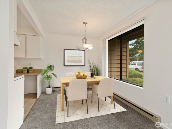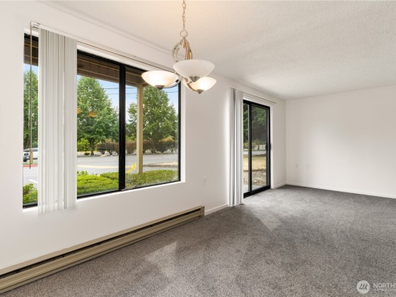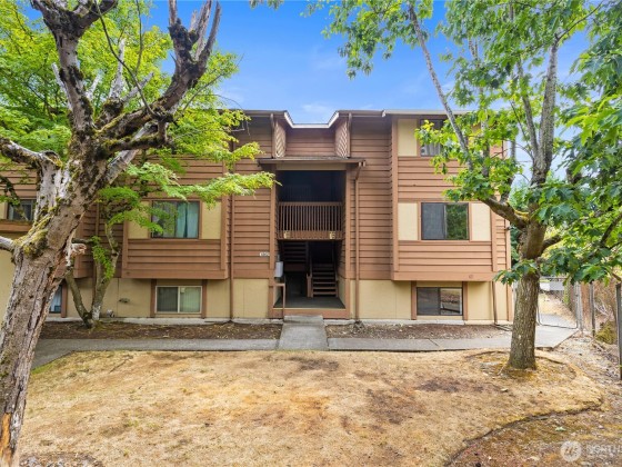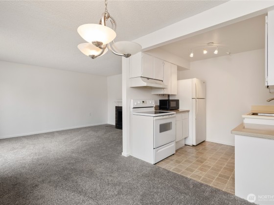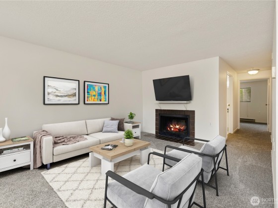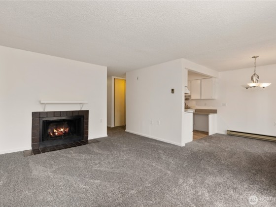 Convenient ground-level condo with fresh interior paint & new carpet. Enjoy mountain & valley views from your living room with cozy wood-burning fireplace. Bedroom features a spacious walk-in closet. In-unit washer & dryer for everyday ease. Covered carport parking with storage unit included. Easy access to I-5 for commuting north or south, plus minutes to Sea-Tac Airport. A perfect blend of comfort, convenience & value!