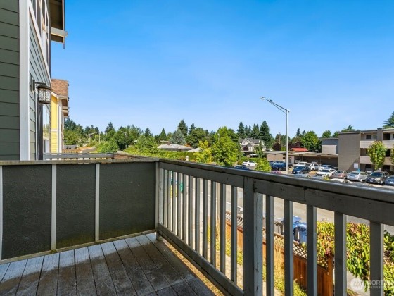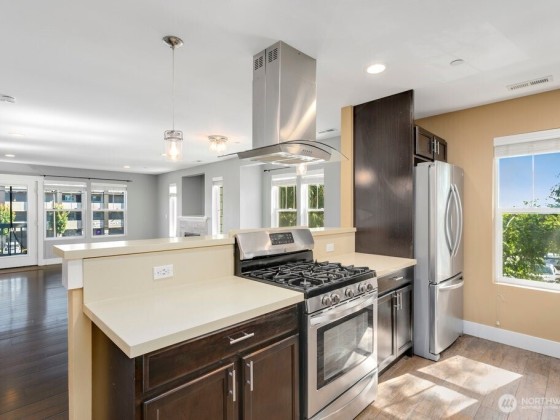 Welcome home! This well-designed tri-level townhome offers a spacious layout with a den and half bath on the entry level, plus direct access to the 2-car garage. The second floor boasts an open-concept kitchen, dining, and living area with dark hardwood floors, stainless steel appliances, walk-in pantry, gas fireplace, and a private balcony. Upstairs features a primary suite with full bath and walk-in closet, a second bedroom, full bath, and laundry. Enjoy the community playground, P-patch, and guest parking. Ideally located near I-5, 405, Light Rail, Sea-Tac Airport, shops, dining, parks, and more!