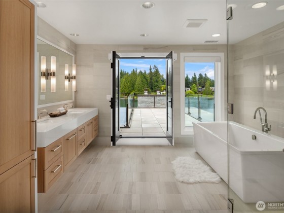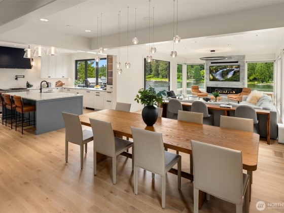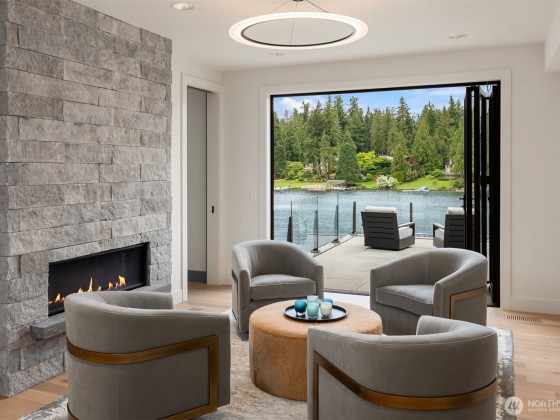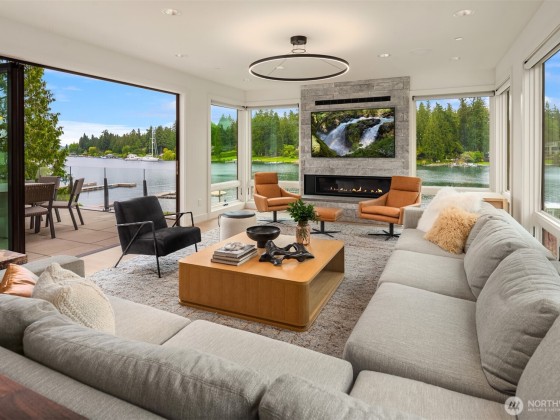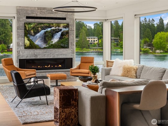 Wide, expansive views & 100 ft of waterfront at this newly completed, custom, street-to-water estate by Saad Custom Homes. Placed on a shy acre, this home offers the best of indoor/outdoor living with multiple entertaining areas & expansive lawn at the water’s edge. Private dock accommodates a 70+ ft yacht & additional watercraft. Inside, enjoy brand-new construction: the kitchen, dining & great room are the heart of the home providing thoughtful spaces for everyday living & festive gatherings. Guest suite & office on the main + 6 additional bedrooms including view primary w/spa-like bath. Ideal floor plan with rec room/bar, gym & sauna. Nothing is missing at this luxury estate in one of the most sought-after communities in the Northwest.