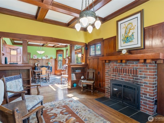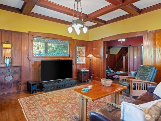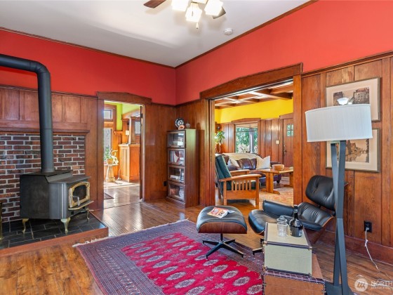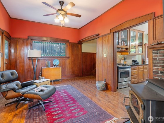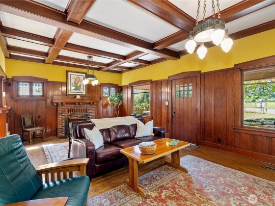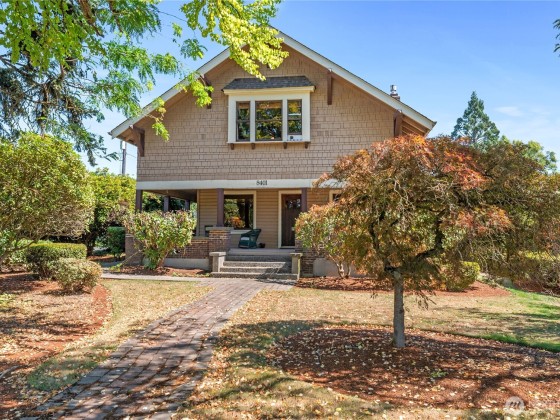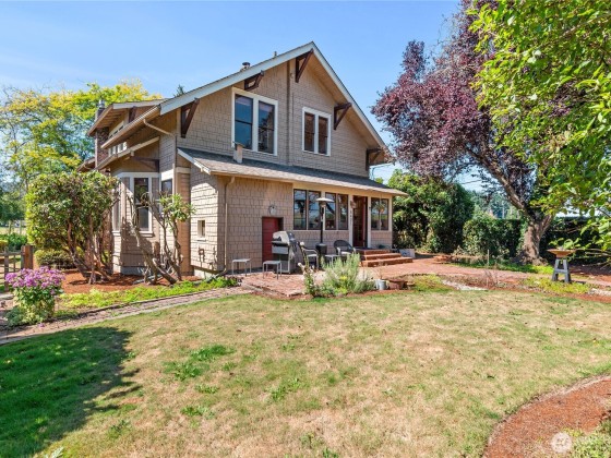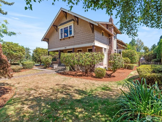 Meticulously maintained residence, constructed in the 1920s, situated on a picturesque parcel of valley land on a generous .38 acre lot. The property has been fully restored & features an expansive covered front porch, elegant hardwd flring, wainscoting, gorgeous stained-glass windows & impressive 12-ft coffered ceilings. Kitchen features Old Tacoma Hotel cabinets & offers views overlooking garden/sunrm. Upstairs includes an oversized primary bedrm w/attached bathrm & walk-in closet, 2nd full bath, 2 additional bedrms, bonus rm & sizeable laundry/sewing area. Mature landscaped yard w/designated garden space offers an opportunity to be revitalized, featuring fertile valley soil ideal for cultivation. Minutes from downtown Puyallup/Sumner.