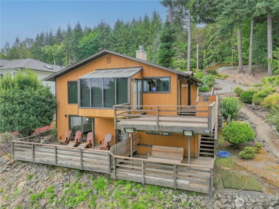 Savor unobstructed breathtaking views of Totten Inlet, paired with exclusive private beach access. This captivating 4-bedroom haven has been previous renovated, featuring lustrous hardwood floors, sleek slab granite counter-tops in the kitchen, high-end appliances, sumptuous Karastan carpeting, and two exquisitely refreshed bathrooms—one with a decadent jetted tub and fully tiled shower in the master retreat. Detached 2-car garage ideal for parking or extra storage. Plus additional parking at the top of property that fits a few extra vehicles or an RV. Home boasts a heat pump w/ AC and water filtration system. Community provides a handy deep-water dock. Just east of Little Creek Casino & Golf Course, a swift 20-min drive from Olympia.