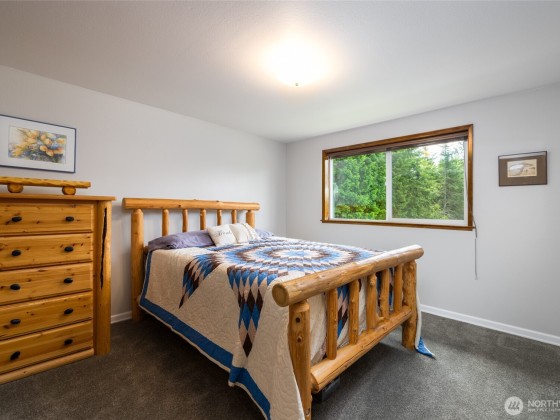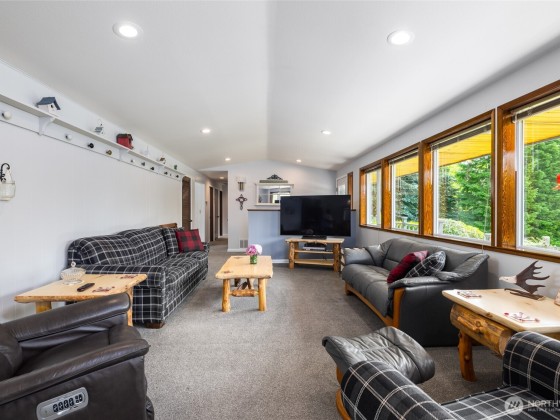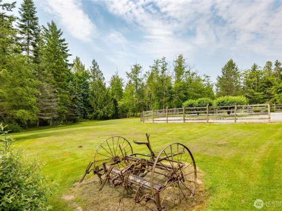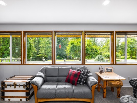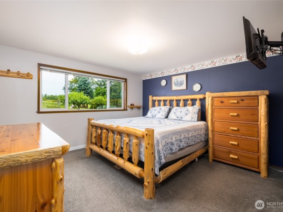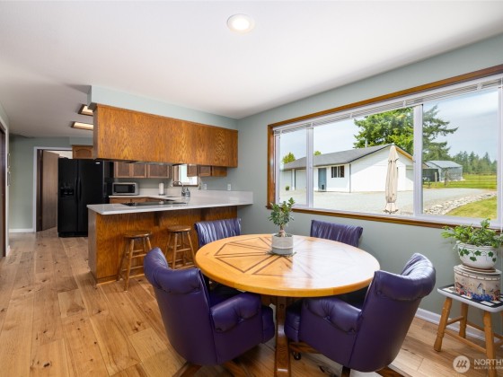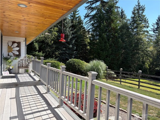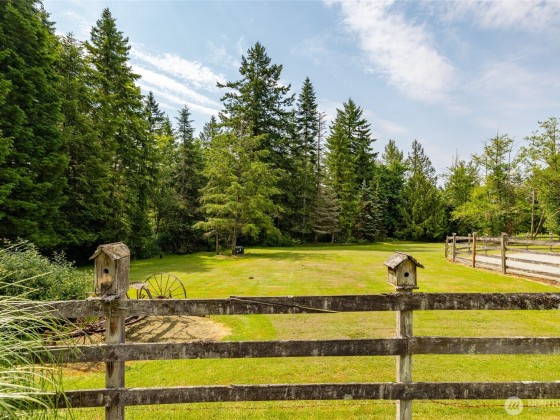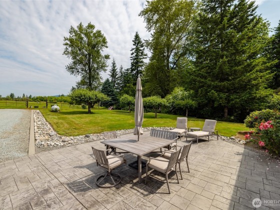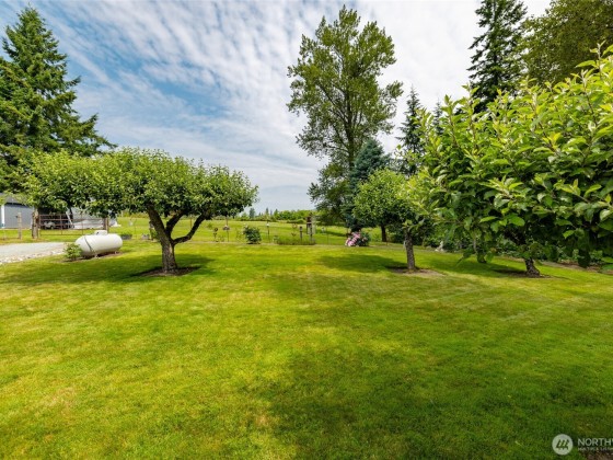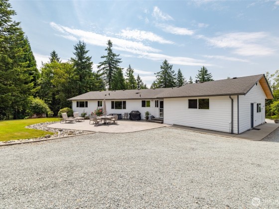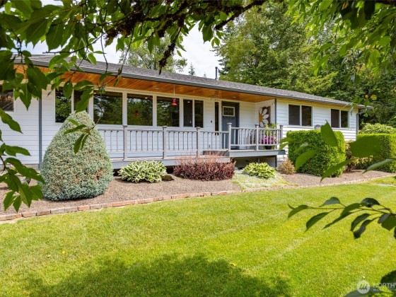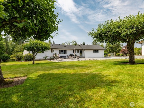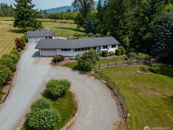 Pristine rambler on 5.5 acres in highly desired Hidden Meadows. This 3 bedroom plus office, 3 bath home features a bright open living room, large kitchen, storage galore, composite granite kitchen sink & quartz countertops. Gorgeous Hickory wood floors in main living areas. A cold closet for canning, new hot water tank, quartz countertops in all bathrooms, new tub/shower combo in guest bath and new shower in primary. Home has new triple glazed windows, new exterior fiberglass doors, gutter guards, and more! Heat with propane or wood. Enjoy nature and bird watching while relaxing on your stunning 30 x 40 stamped patio. Spacious 864 sf detached Garage & Shop. Pasture perfect for horses! Conveniently located between MV & Bellingham. See Today!