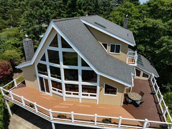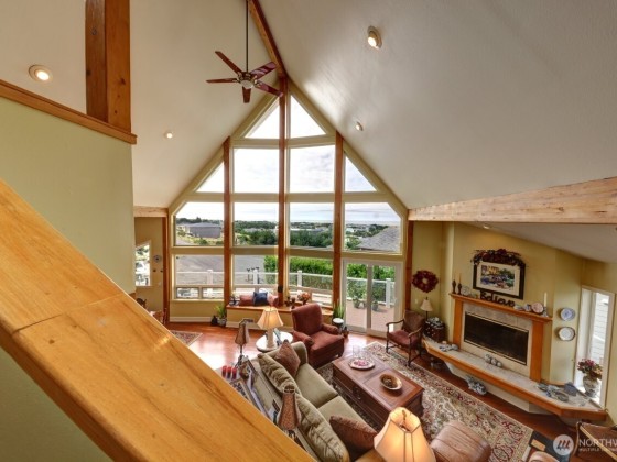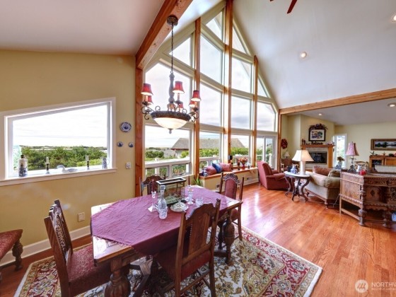 An Oasis best describes this spectacular home. Sitting on half-acre of private land and tranquility abounds. This home’s ocean & forest views, waterfall, lovely back patio, beautiful landscaping nestled amongst the trees, you will hardly know you are in a neighborhood. Ground level enters into stunning sunroom & family room w/ wood stove insert, wet bar, ¾ bath & office/bedroom. Main level w/ peaked 25ft ceiling, ocean view is your great room w/ propane fireplace, dining & full kitchen, 2 guest bdrms, full bath & laundry. Bdrms have direct access to wrap-around deck. Primary suite has ocean views in bdrm, full bath & walk in closet. Propane fireplace in bath & bdrm. Greenhouse & shed both, w/power. Seller is licensed WA real estate broker.