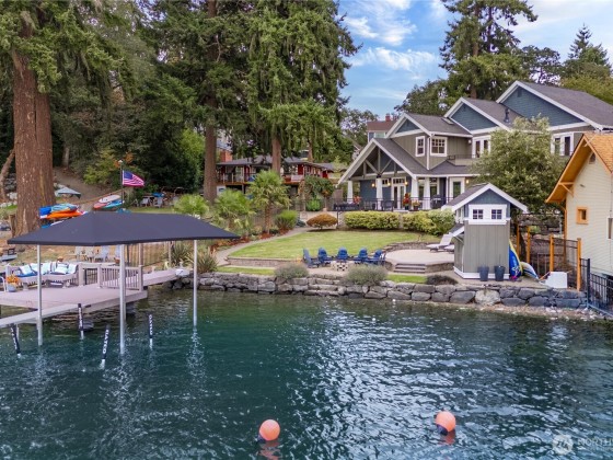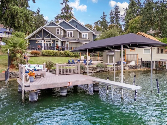 Discover refined living in this stunning custom-built lakefront retreat! This home offers an ideal balance of comfort, sophistication, and breathtaking water views. Step inside to soaring ceilings and elegant heated limestone flooring, setting the tone for the home’s upscale finishes throughout. The Chef’s kitchen is a showpiece, featuring high-end appliances, custom cabinetry, and seamless flow for both cooking and entertaining. Wake up to serene lake views, enjoy open living spaces filled with natural light, and retreat to a primary suite designed for relaxation. The oversized 4 car garage with room for your boat or Seadoos!Outdoor enjoy Cobblestone walkways, new pavers, fire pit, sports court, private dock with new boat lift and canopy