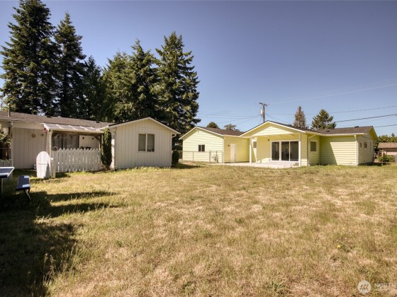 2 houses for the price of 1! Discover the possibilities with this unique property in Elma. The main home offers 3 bedrooms, 1 bath, a spacious layout with two living areas, a cozy gas stove, and 1,300 sq ft of comfortable, single-level living. Enjoy the large 2-car garage, fenced backyard, and inviting back patio with alley access. The bonus? A charming 684 sq ft second home featuring 1 bedroom, 1 bath, and its own private patio—perfect for multi-generational living, guests, or rental income. Conveniently located near town amenities, this versatile property offers both comfort and opportunity.