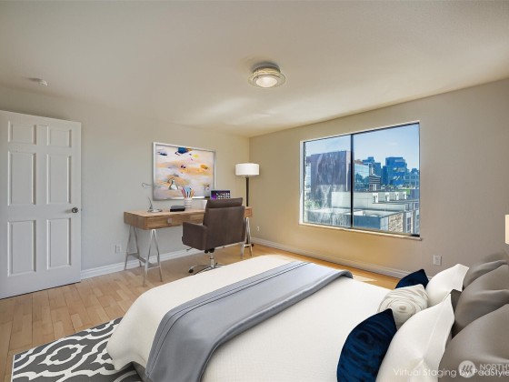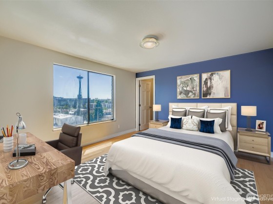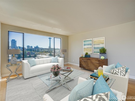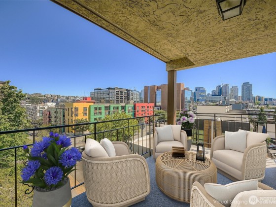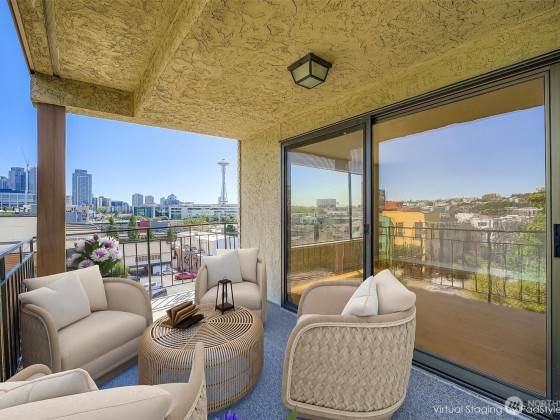 Boutique Building in Queen Anne Uptown and just a quick jaunt to Belltown and Downtown! Light-filled corner unit with spaces you don't find in a new building. Dine in the neighborhood when you want but you won't have to - you'll never feel scrunched at home! Updated Kitchen, large Living Room with slider to oversize and newly restored covered Balcony. Barbeque anyone? Enviable closet space - two closets in the Bedroom, coat closet, in-unit Laundry Room, separate storage. Generous parking in secured garage will fit a large SUV. Fit a home office in the walk-in-closet or in the excess space in your Living/BDR/Laundry. Minutes to Sporting Venues, the Waterfront, Seattle Center. You'll love living in the heart of it all! Pet friendly community.