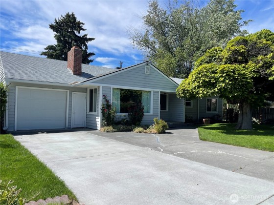 Adorable gray & white bungalow/rambler with basement, ideally located near school and close to amenities. Spacious yard boasts mature shade trees, garden space, and a sprinkler system for easy upkeep. Private fenced backyard includes RV parking and storage shed. Main floor offers a large living room with fireplace and hardwood under carpet, utility room, 3 bedrooms, and 2 baths. Single-car attached garage features a sectioned workshop. Lower level includes a rec room with fireplace plus extra rooms for storage or future living space. An affordable opportunity for first-time buyers or downsizers, with plenty of potential to update and build equity. Enjoy comfortable living with charm, functionality, and room to grow.