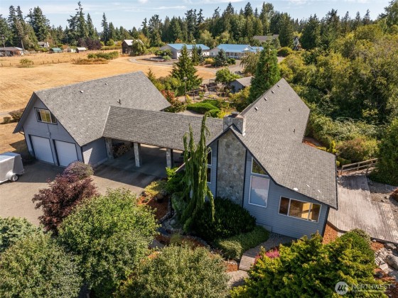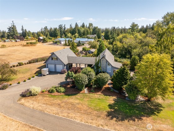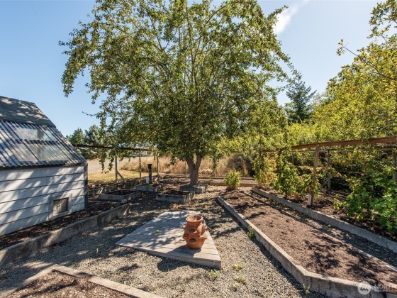 Stunning mountain view 2-bedroom, 2.5-bath home sits on 2.5 acres of beautifully landscaped grounds. The main living area features vaulted ceilings, a stone fireplace, and a loft, while the library/office provides a quiet retreat. Spacious primary suite includes a large walk-in closet, a wrap-around walk-in shower, and soaking tub. Outdoor amenities w/ a 3-car garage, attached 2-stall carport, a shop with its own bathroom, and RV parking with power and water. Garden enthusiasts will appreciate the greenhouse, raised beds, separate rose garden, and tranquil zen garden, complemented by fruit trees throughout the property. Above the garage, is a 1-bed, 1-bath ADU. Home is move-in ready, w/ the option to purchase an adjacent 5-acre parcel.