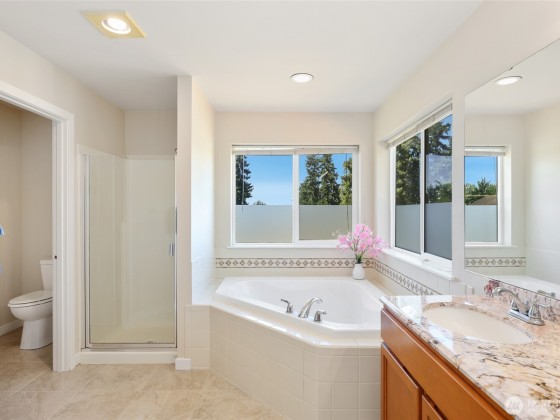 Pristine 5 bed home loaded w/custom upgrades including beautiful hardwood floors, crown molding & granite counters in kitchen & all bathrooms. Family room w/tile gas FP opens to nook & kitchen w/elegant high backsplash & breakfast bar. Huge primary retreat w/vaulted ceilings, elegant 5-piece bath & walk-in closet. 4 additional bedrooms, full bath & laundry upstairs. Fresh interior paint throughout, fresh landscaping & new retaining wall w/special entertainment deck out back. New roof, gutters, attic insulation (2021). New Trane furnace w/97% HE & pex plumbing (2020). All major maintenance & repair items have been addressed. Corner lot, quiet community & easy access to I-5 & 167. Mortgage savings may be available for buyers of this listing.