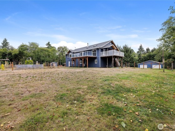 Experience country living in this well maintained two story home on 5 acres. Home offers 2200 sq ft of living space above a spacious three car garage. Interior highlights include 3/4 inch hardwood oak floors, solid wood doors, quartz countertops, and black stainless kitchen appliances. The primary suite features a jacuzzi tub. Home is equipped with a tankless three appliance water heater, plus a whole house water filtration system. Other upgrades include a new roof and skylights (3 years old), enclosed blue pine soffits, a 40x50 shop with cement floors, chicken coop with attached shed, and fenced garden area with mature fruit trees. The yard is also partially fenced for pets. A perfect blend of modern efficiency and rural charm.