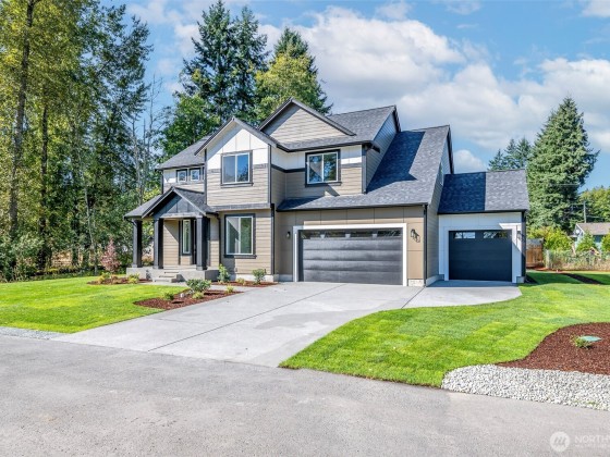 Interest rates as low as 4.99%! Overbuilt by design—CUSTOM NEW Construction! Beautiful 5-bedroom, 3-bath home rests on an estate-sized lot with professional landscaping & full irrigation; large, private yards just minutes from Hwy 512. The oversized 4car finished garage includes 8-ft insulated steel-backed doors. Inside you’ll find 9ft ceilings & luxury vinyl plank flooring throughout the main level. The open kitchen showcases custom soft-close cabinetry, upgraded quartz counters & a 12ft double slider opening to the covered patio. Vaulted primary suite features a 5-piece bath & generous walk-in closet. Tile-surround fireplace, 40-year roof, Hardie siding, efficient heat pump, complete appliance package, RV parking & no CC&Rs—move-in ready!