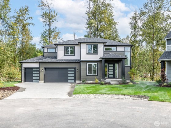 Interest rates as low as 4.99%! Overbuilt by design—CUSTOM NEW Construction! This 5-bedroom, 3-bath home rests on an estate-sized lot with a serene pond setting & captivating views of Mt. Rainier. Professionally landscaped with full irrigation just minutes from Hwy 512. Massive 4-car finished garage with 8-ft insulated steel-backed doors. Enjoy 9-ft ceilings & luxury vinyl plank flooring throughout the main floor. Open-concept kitchen with soft-close cabinetry, quartz counters & a 12-ft double slider leading to a covered patio. Vaulted primary suite features a 5-piece bath & an expansive walk-in closet. Tiled fireplace, 40-year roof, Hardie siding, efficient heat pump, complete appliance package, RV parking & no CC&Rs—move-in ready!