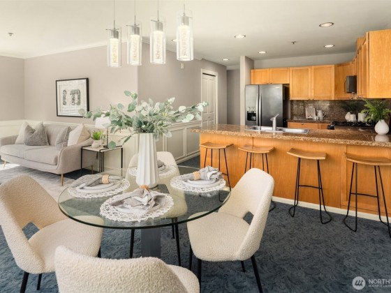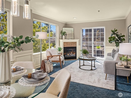 $3,000 buyer credit with a preferred lender (Adam Golden, CrossCountry Mortgage)—the seller is motivated and ready to make a deal! This bright top-floor corner unit is filled with natural light and features an open kitchen with granite counters, stainless steel appliances, a gas range, and a breakfast bar flowing into a spacious living area with crown molding, modern lighting, and a cozy gas fireplace. With two bedrooms, 1.75 updated baths, in-unit laundry, fresh paint, and a private balcony, it’s move-in ready. Secure garage parking, storage, elevator access, blazing-fast 1 Gig internet (included in HOA), and a pet-friendly, no-rental-cap policy near Northgate Light Rail, Green Lake, and I-5 make this a must-see—bring your offer today!