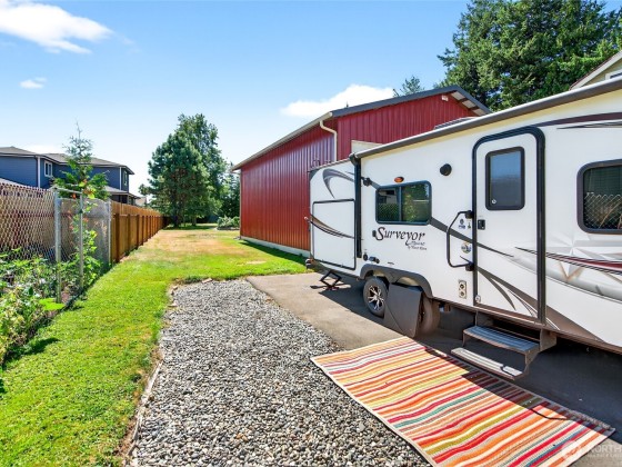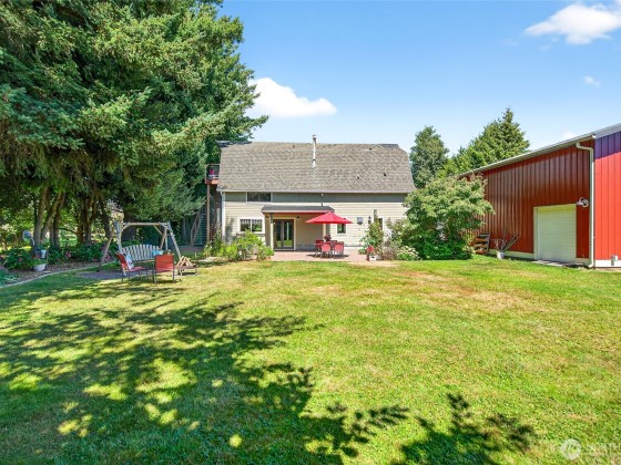 Old-World Charm Meets Modern Living! This stunning barn-to-home conversion showcases solid reclaimed fir millwork throughout, offering timeless charm. Nestled on just under 1 acre within city limits, this 3-bedroom, 2.25-bath home, updated with new windows and fresh paint inside and out. Additional 3rd story ADU features its own kitchen, ¾ bath, and AC —ideal for guests, rental income, or a private home office. Enjoy the backyard with a spacious patio, large lush lawn, garden area and a fenced dog run. A 28’ x 36’ insulated shop with loft, ideal for workshop, gym, RV / boat storage, or a business. Full RV hook-up. Zoned to allow two additional homes or ADUs, buyer to verify. 2 minutes to the soccer fields & 8 minutes to Bellingham.