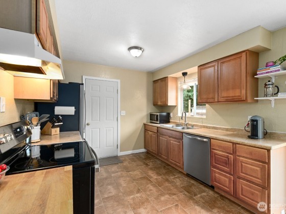 Adorable, well-loved & efficient one-level living in Burien. The living room gets oodles of natural light & has a fireplace to warm up your Winters. Three good sized bedrooms with hardwood floors and a big bathroom with double vanity sinks. The kitchen has a newer stove & dishwasher, ample cupboard & counter space, plus a HUGE pantry. Sizeable dining room with sliders to the back. You're going to love the fully fenced rear yard with patio, raised garden beds, large deck, & big shed for your garden supplies. The extra-long garage fits your car & has plenty of storage including an easy lofted option. New roof in 2022! Pre-inspected for your convenience. Square footage does not include garage-home lives big with remarkable storage!