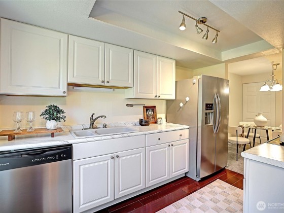 This beautiful condo offers comfort & convenience in one of Issaquah’s nicest communities. Galley Kitchen features stainless steel appliances. The spacious primary suite includes a private 3/4 Bath for added comfort. Second Bedroom could be office or flex room. Plenty of storage throughout. Both Bathrooms updated with new flooring adding a fresh, contemporary touch. Enjoy a cozy evening by the wood-burning fireplace in the open-concept living and dining space. Step out onto the balcony perfect for relaxing with an additional storage closet. Community amenities include a swimming pool, playground & sports court. Ideally located near I-90, Costco, shopping and dining this home offers the perfect blend of style, convenience and community!