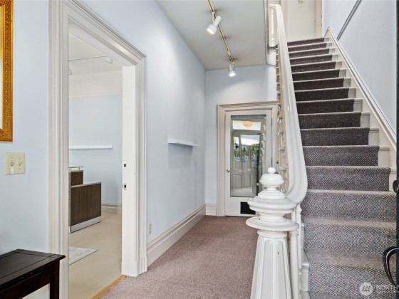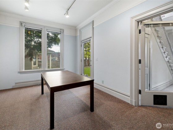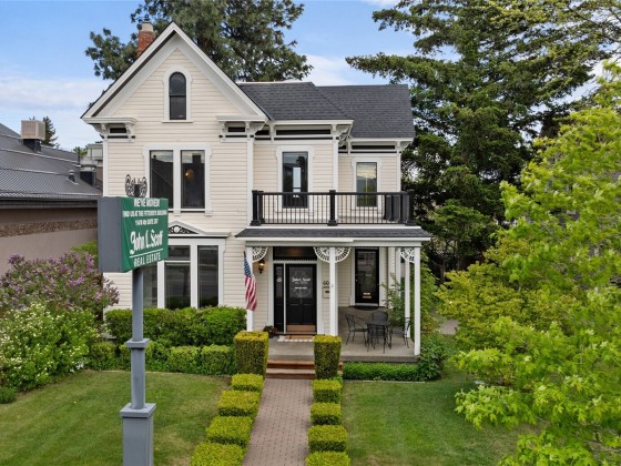 This breathtaking historic gem offers timeless elegance with modern updates. Featuring a spacious main floor bedroom and half bath, a grand living room with a cozy fireplace, a formal dining room and a thoughtfully remodeled kitchen, this home exudes charm at every turn. Upstairs, two sun filled suites and two additional bathrooms provide ample space and comfort. The second floor layout perfectly balances historic character with modern functionality, making every day living feel like a retreat! Enjoy outdoor living at its finest on the walk-out porch, an ideal spot for morning coffee or evening relaxation. Nestled on a property with four uncovered parking spaces off the alley, this home offers versatile CC zoning.