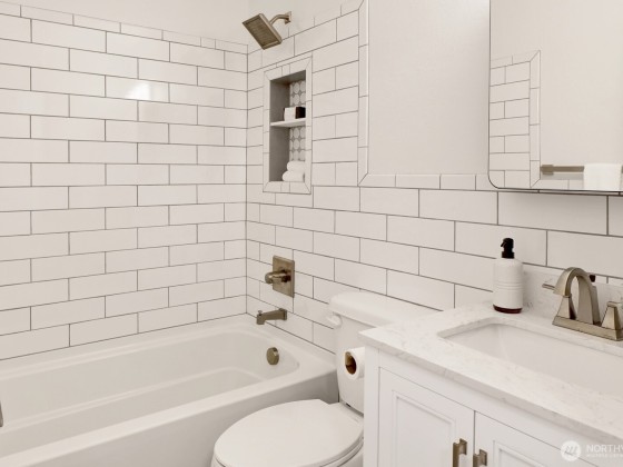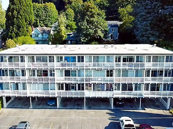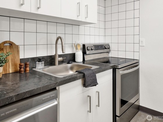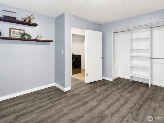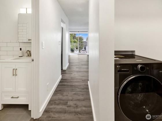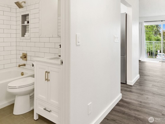 Live where convenience meets charm! This beautifully updated 1-bedroom, 1-bath condo offers modern style, thoughtful upgrades, and a peek-a-boo bay view. The kitchen shines with custom soft-close cabinetry, new appliances, and LVP flooring that flows throughout. The bathroom features gorgeous tile and marble countertops, while custom closets, abundant storage, new blinds, custom wainscoting, and updated wall heaters add both comfort and character. In-unit washer/dryer combo makes everyday living easy. Step onto your private balcony for fresh air and a glimpse of the bay. Storage area & laundry in building. Just minutes from downtown, WWU, shopping, dining, hiking, the waterfront, and trails—everything you love is right outside your door.