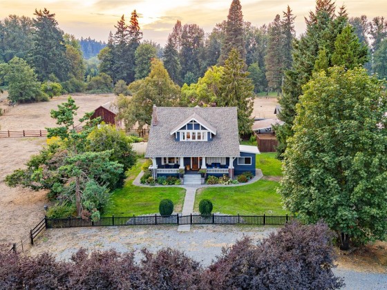 Remarkable income-producing estate! 7+ acre property features 2 stunning homes, 1920s Craftsman (3,120 sq ft) remodeled in '21 w/luxury finishes, quartz/marble counters, pot-filler 6 burner gas range, heated floors, designer details (see supplements) & a 1,200 sq ft 2-story ADU remodeled in '23 to same standards w full kitch, laundry, 2 BA. Level, dry acreage w great soils, 6-stall shed-row barn, walk in chicken coop/run for 40 hens, est gardens, 32x40 Shop w laundry & RV door. AND 2nd parcel w pwr. Ideal for events, equestrian pursuits, generational living, or continued Airbnb success. Rare blend of modern comfort &timeless charm—live, work, & earn fm one extraordinary property. See Virtual tour link. Warranty & % of closing costs incl.