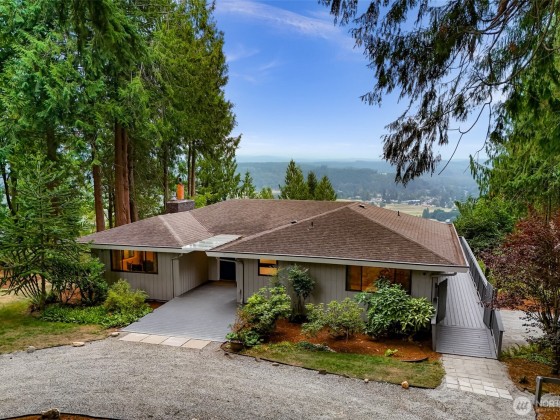 Oh my VIEW! Prepare to be captivated by breathtaking Cascade Mountain & Snoqualmie Valley vistas from this immaculate 2,880 sf daylight rambler. Perfectly positioned on a private and highly usable shy 5-acre parcel with pasture, equestrian potential, metal outbuilding, RV hook-up, and mini-farm ability, this property offers both beauty and function. Thoughtfully updated, move-in ready, and tucked on a private road, abutting the 574-acre Tolt-MacDonald park with miles of trails providing the ultimate blend of serenity, usability, lifestyle, & convenience. Enjoy sweeping views, privacy, and the feeling of being worlds away—yet conveniently located in Novelty Hill’s Ames Lake area providing a rural forest vibe without the long commute.