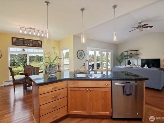 Nestled in one of Whidbey Island’s most coveted neighborhoods, this refined single-level residence offers the perfect blend of luxury & tranquility. Set on nearly ¾ of an acre of wonderfully landscaped grounds, the home enjoys sweeping views of Useless Bay Golf & Country Club, w/vistas of the lush course, serene nature preserve, & abundant wildlife. Smartly designed, the entryway leads to an open dining, kitchen & living experience complete w/vaulted ceilings, granite counters & hard wood floors. The many recent updates include a new 3-bedroom septic, roof, expanded deck, flex room addition w/bath, water heater, closet solutions, awning & wine cellar. Minutes to beaches, golf, pool, courts, trails, shops, wineries, restaurants & ferry!