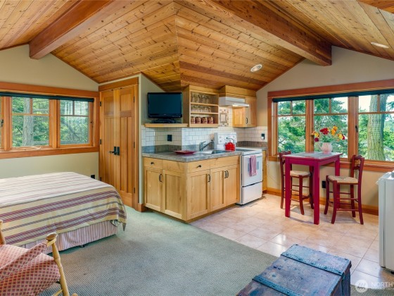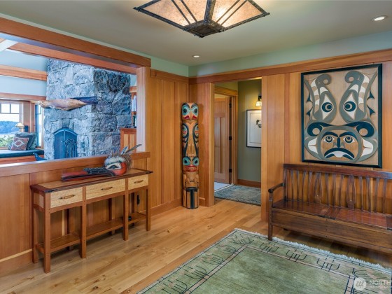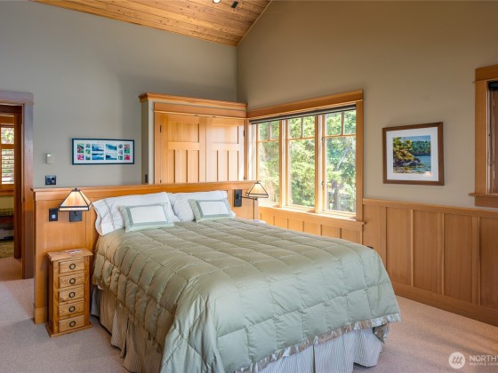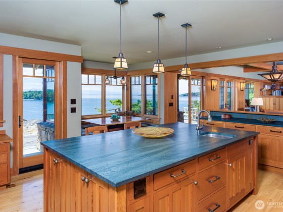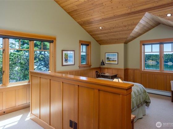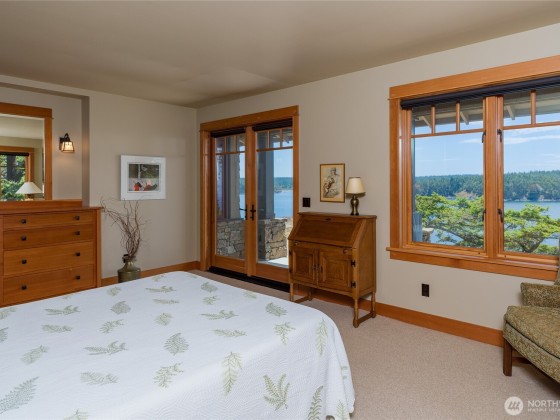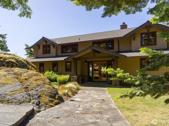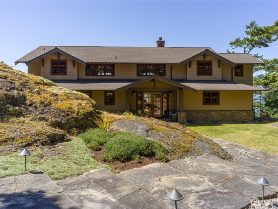 LOPEZ ISLAND LUXURY A rare blend of privacy, distinction & breathtaking views. This custom NW Craftsman sits on 27 waterfront ac overlooking MacKaye Harbor to Vancouver Is & OLympic Mtns. Designed for southern vistas, the 3BD/3.5BA home features madrona floors, banks of windows & clear fir cabinetry & finishes. Great Room centers on a stone fireplace with built-ins & view daybed. A chef's kitchen offers slate counters, double ovens, Wolf cooktop & breakfast nook. Two ensuite primary bedrooms with walk-in closets, one with covered deck. French doors open to sunny stone patio & eagle-eye views. Detached garage with studio above. Seasonal creek winds thru mature woods & pasture. Lg shop/garage, fenced garden, fruit trees, chicken house & more