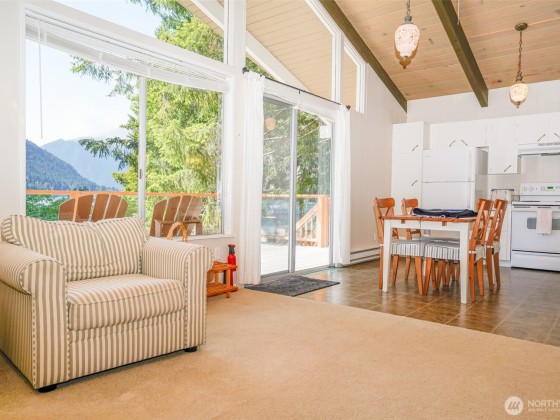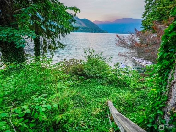 Opportunity knocks to secure a rare low bank waterfront cabin along the pristine waters of Lake Cushman! This property is on a very private road, tucked away from the crowd and conveniently located near a boat launch. The charming two bedroom cabin has vaulted ceilings, a wall of windows, and a wood burning stove to tie it all together. The views of snow capped mountain peaks, towering trees, and the glistening freshwater lake are absolutely incredible and can be enjoyed from your living space or outside on the sizable composite deck. This is the ultimate getaway with short term rental potential if so desired. The water is easily accessed with the perfect area by the water to enjoy all of the lake life recreation and develop as you wish!