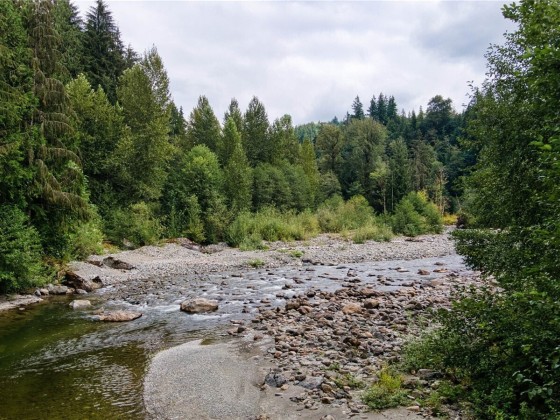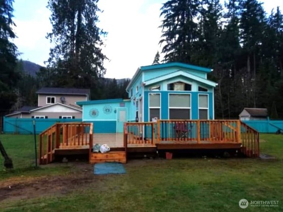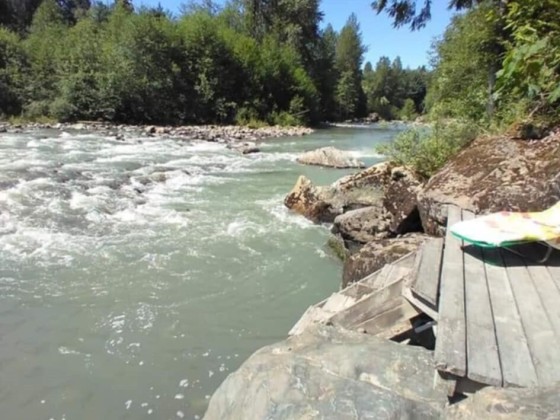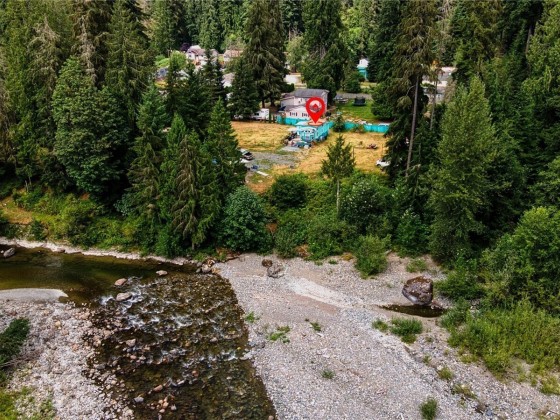 74' of beautiful, private high bank RIVER FRONT property on 2 lots totaling .76 acres, one on the river. Property has 3 bedroom septic, public water and power. Path down to river leads to a beautiful beach with a deck built for enjoying your riverfront and listening to the sounds of Canyon Creek. Existing tiny home and large shed need work, or build your own home or summer retreat. Primary value in the land. LAND ONLY assessed value is in excess of 4291k for 2025, $329,900 for 2026. Great value!