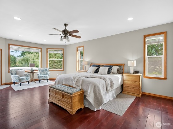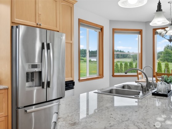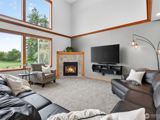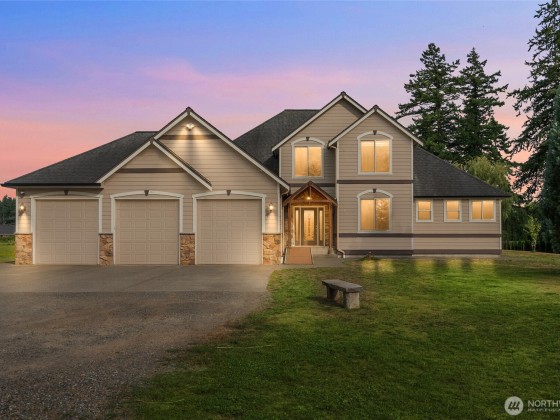 Gated privacy on 13 acres, and without the HOA… It doesn’t get better than this. This 4 bed + den, 4.5 bath home is just a short drive to main city Ferndale, I-5 and Lynden. Inside, the home opens up to a grand great room with views of Mount Baker. The maple & cherry hardwoods, granite countertops, SS appliances in the chef's kitchen, & French doors create a timeless style. Premium upgrades include a whole-house generator, reverse osmosis water treatment system, blue-light air sterilization, whole house security system & more. Enjoy 2 large primary suites with en-suite baths, a fenced pasture, space for all your toys & animals. Offering privacy and modern sophistication, without compromising on convenience…This is your private escape.