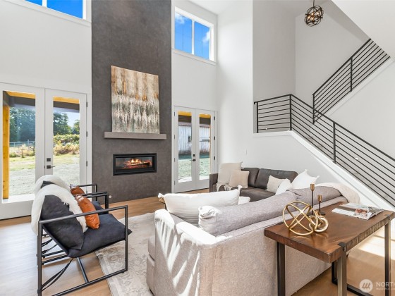 Modern farmhouse on acreage with stunning mountain views! Features vaulted ceilings, stainless steel appliances, beautiful floor-to-ceiling tiled fireplace, and large quartz island in a chef-inspired kitchen. Oversized primary suite with spa-like bath and walk in closest with W/D hookups. Enjoy modern finishes, abundant natural light, and covered outdoor living. Prime location—private yet close to town. Style, space, and serenity await!