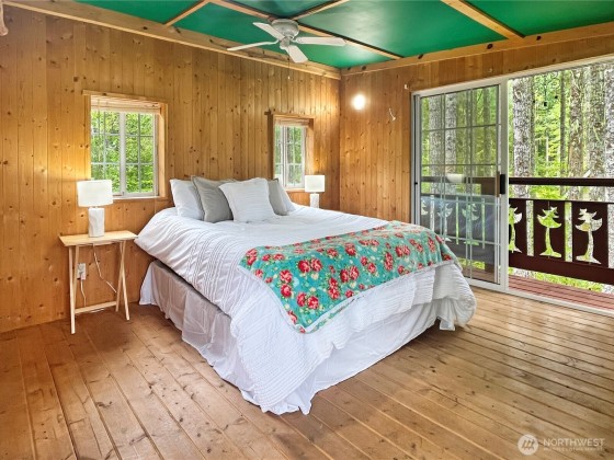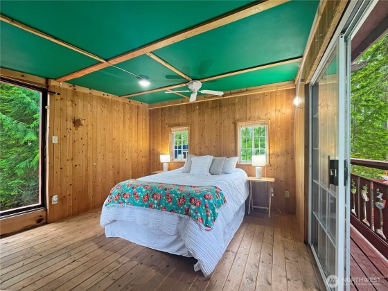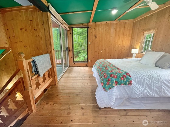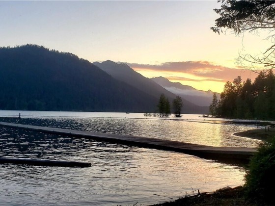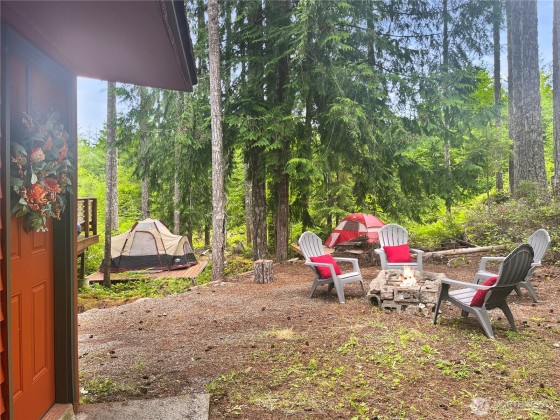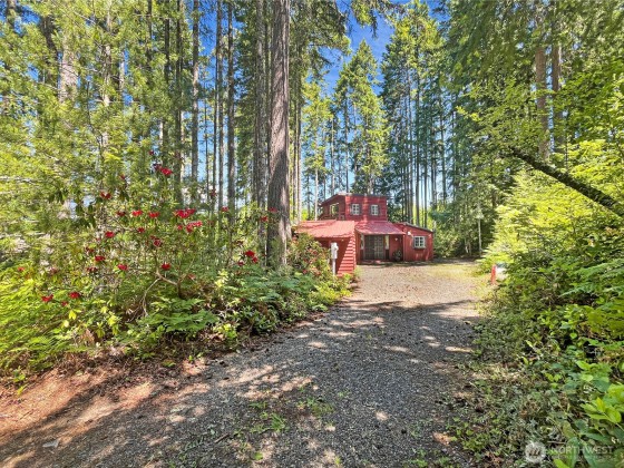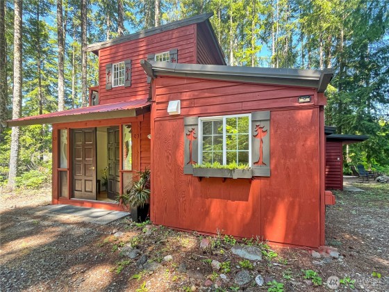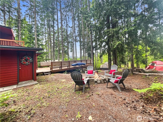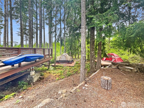 This rustic 1-bedroom cabin blends comfort with outdoor living. Located in Division 1 near a private park and boat launch, it features a huge main-level deck with built-in bench seating—perfect for entertaining or relaxing under the trees. Upstairs, two more decks include a rooftop retreat off the bedroom where you can watch the sunrise and clouds lift over the Olympic Mountains. Inside, a propane fireplace adds cozy charm to the living room, which opens through French doors to a light-filled dining area. Two glamping platforms offer extra space for guests or a peaceful retreat. Comes with full Lake Cushman amenities and is minutes from quaint Hoodsport for shopping, dining, and exploring the Hood Canal.