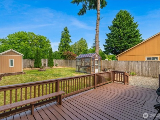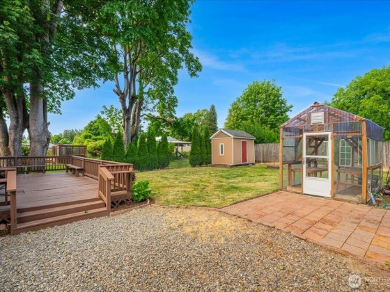 Charming, move-in ready home in quiet neighborhood. Freshly painted interior and exterior trim. Kitchen and bathroom have been updated. Luxury Vinyl plank flooring on the main. Brand new carpet upstairs. Enjoy your morning coffee on the wood deck, overlooking a beautiful yard which includes fruit trees, fire pit, greenhouse and room to garden.