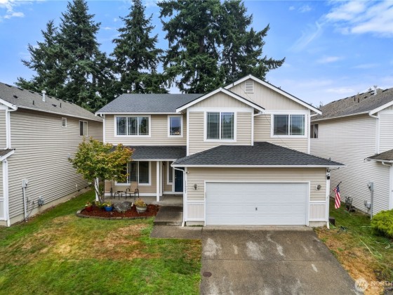 Welcome home to 2,812 sq. ft. of thoughtfully designed living space filled with warmth and comfort. The spacious kitchen with island and pantry flows into formal dining and living rooms, creating the perfect setting for gatherings. A cozy fireplace anchors the family room, while a versatile bonus/den offers space for work or play. Upstairs, the private primary suite features a spa-like bath, walk-in closet, and convenient laundry nearby. Step outside to your own backyard retreat with a hot tub and covered cabana, perfect for quiet evenings or entertaining friends. Ideally located near Puyallup schools with easy commuter access, this is a home designed for both everyday living and special moments.